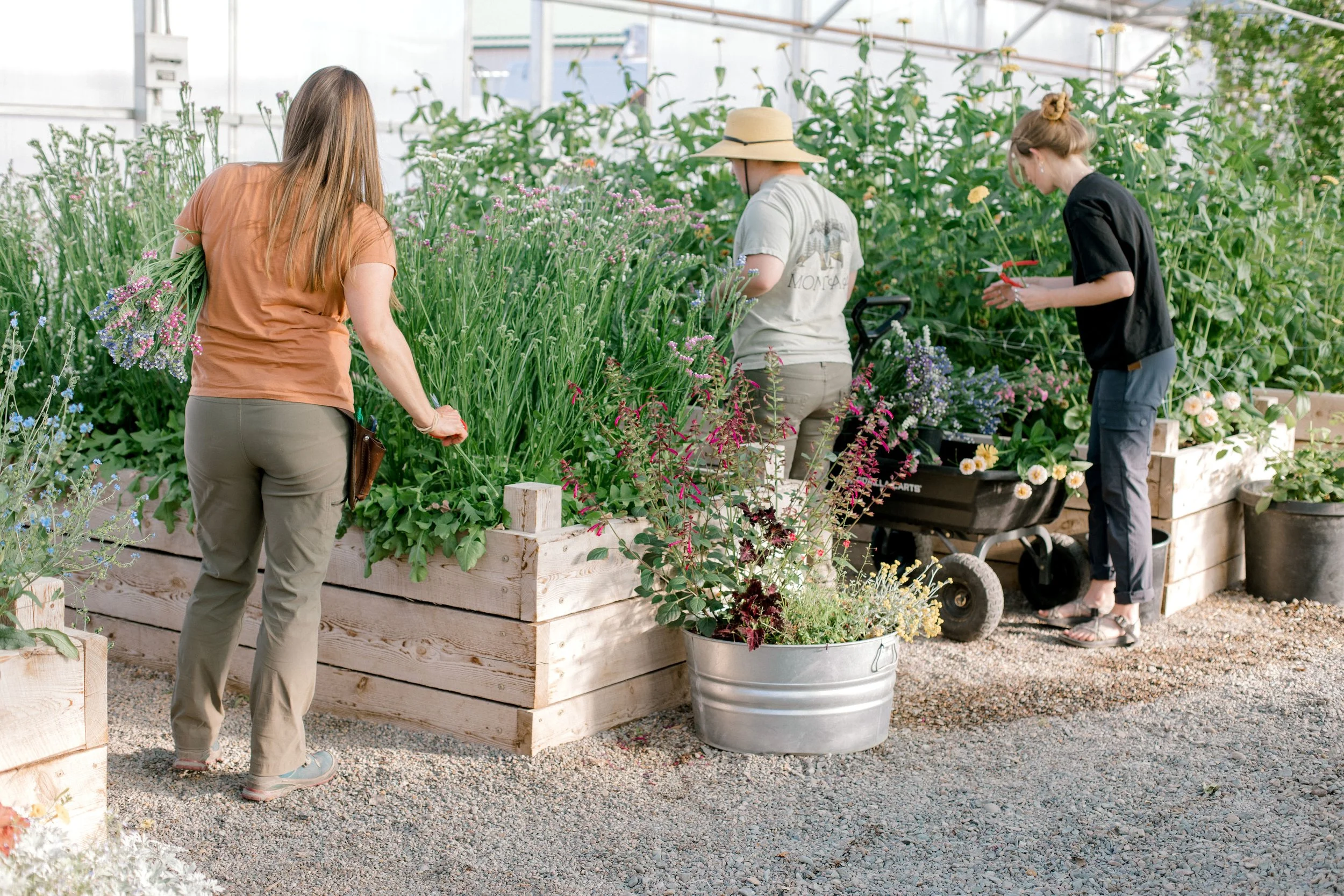 Designing seasonally allows us to harvest flowers at their peak — richer in color, fragrance, and structure — while reducing waste and minimizing environmental impact. This approach creates florals that feel alive, expressive, and deeply connected to time and place. The farm directly informs our studio aesthetic. The way flowers grow in the field — their movement, spacing, and natural variation — shapes how we design. This connection results in arrangements that feel organic and intentional, never overly styled, and always honest to the season.