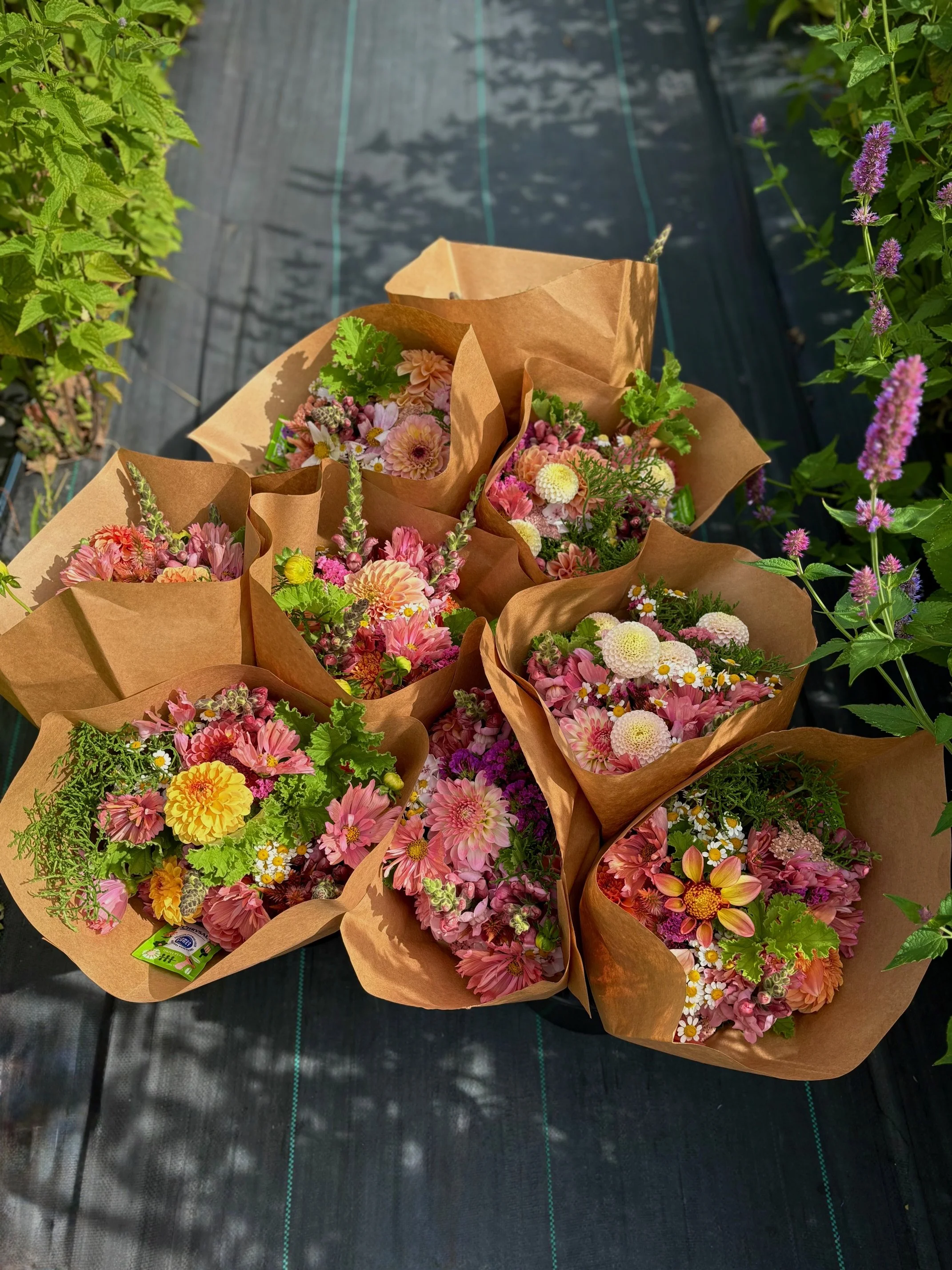 Seasonal flower subscription boxes featuring farm-grown blooms available for local pickup throughout the growing season.